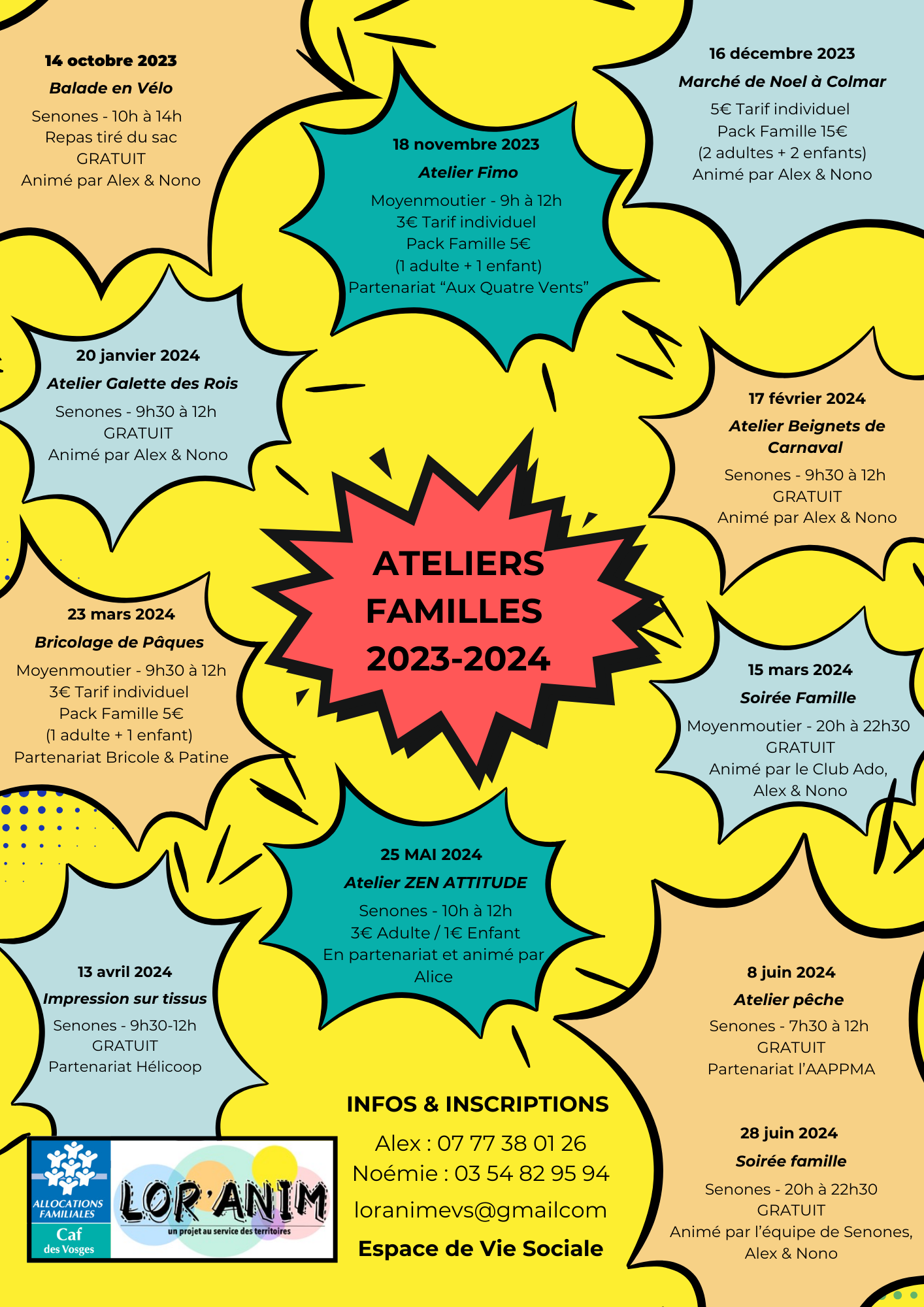 Différents ateliers sont mis en place dans le cadre de l’EVS par Noémie & Alexandra ! Pour toutes informations complémentaires n’hésitez pas à joindre : Noémie au : 03-54-82-95-94 Alexandra au : 07-77-38-01-26 Ou par mail : loranimevs@gmail.com